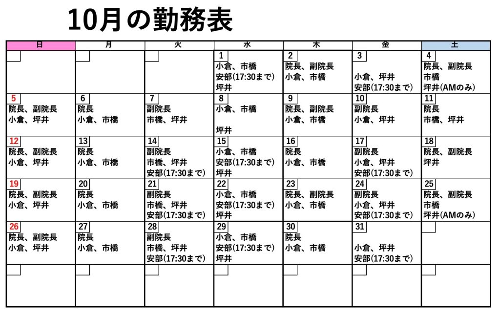 急なお休みもございますので予約カレンダーやお電話でご確認ください。